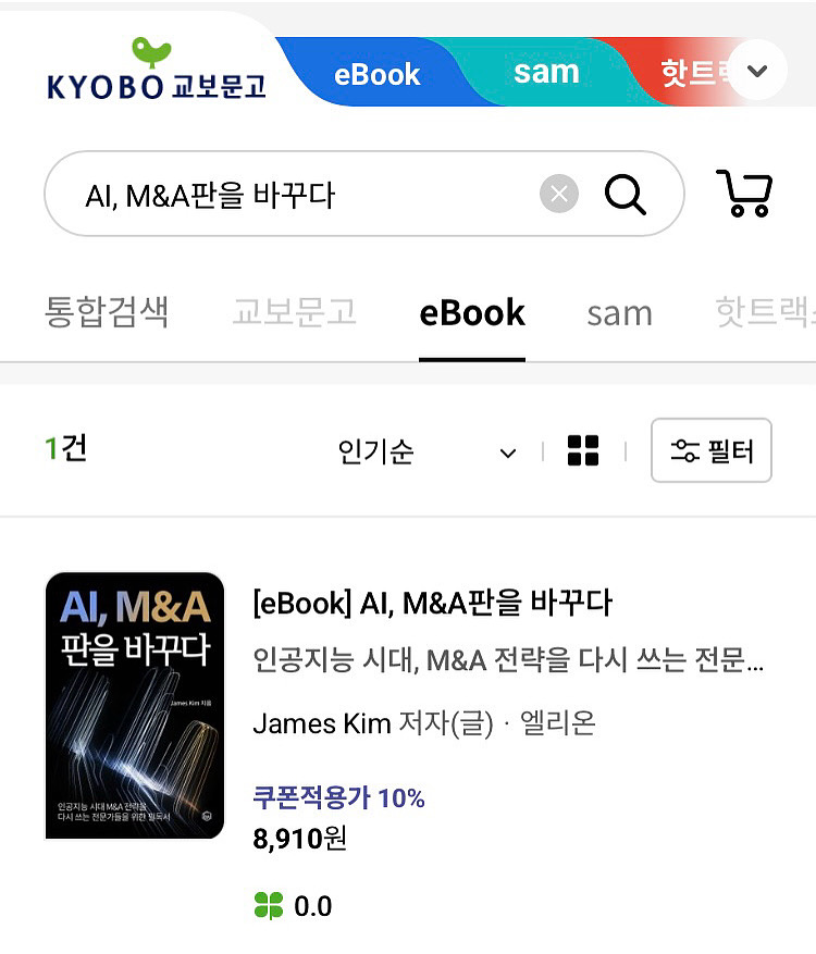 James Kim, <AI, M&A판을 바꾸다>: 2025년 1월부터 온라인과 오프라인에서 ‘멘탈 모델’ 수업을 진행해 오고 있습니다. AI 시대가 도래하면서 세상은 급변하고 있습니다. 변화의 물결에 합류해 파도를 타는 사람은 비약적인 발전을 이루는 반면, 변화를 거부하고 기존의 방식을 답습하는 사람은 생존조차 보장받지 못하게 되었습니다. James Kim 님은 대기업에서 임원으로 일하고 있던 M&A 전문가였습니다. 인생 2막이 열리며 이직 등 새로운 도전을 원하던 시기에 마침 AI 시대가 도래했고, 그때 저와 인연이 닿게 되면서 책을 쓰기 시작했습니다. 한국어뿐 아니라 영어본도 완성했으며, 얼마 후에는 교보문고 등 국내 유통사뿐 아니라 해외 유통사를 통해서도 세계 각국에 영어로 출판될 예정입니다. 출판사도 설립했으며, M&A 전문 지식과 AI 활용 능력을 바탕으로 회사를 운영하는 한편, 강의와 컨설팅도 진행할 예정입다. 관심이 있는 분들께서는 한 번 읽어 보시면 좋겠습니다. 감사합니다. ”인간 해방: 인간을 자유롭고 행복하게“